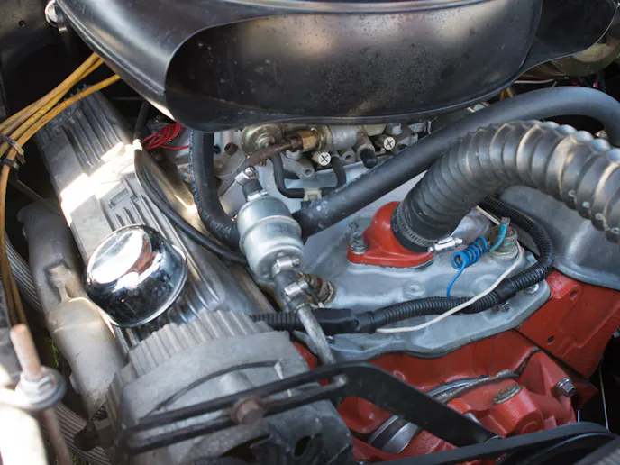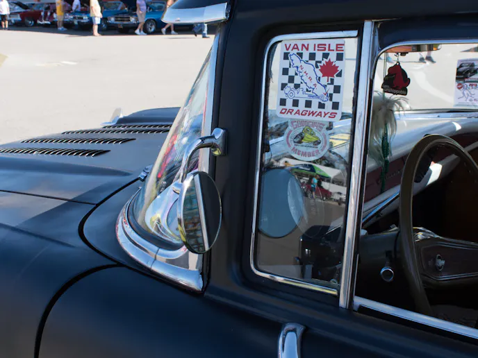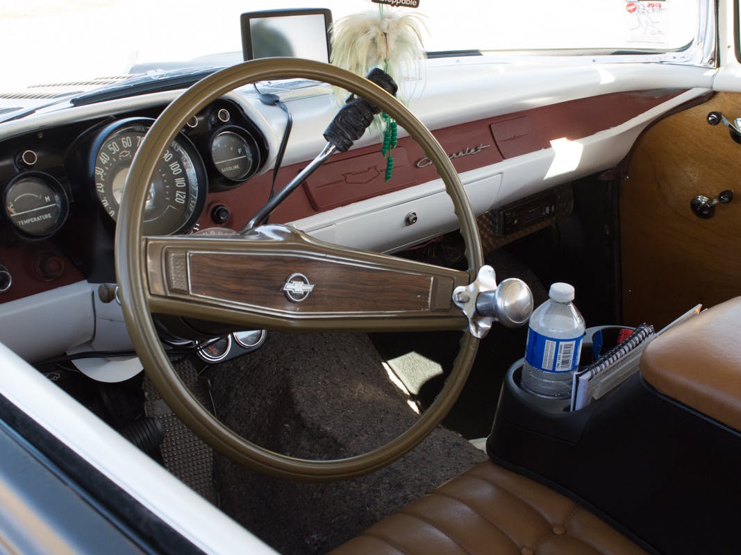 Joe used to drag race a ’57 Chevy decades ago before the local strip closed in 1973. He still has that ’57 and found out after buying this one that there was a connection between his two cars. In some old pictures from the strip he noticed a 1957 delivery sedan that looked just like this one, but with about 70 of them made, how does he know it is the same car? Well, the back window on the car he raced has the exact same crack. “I have left the window the way it was when I got it,” Joe told us. “It’s a reminder of the old days.”