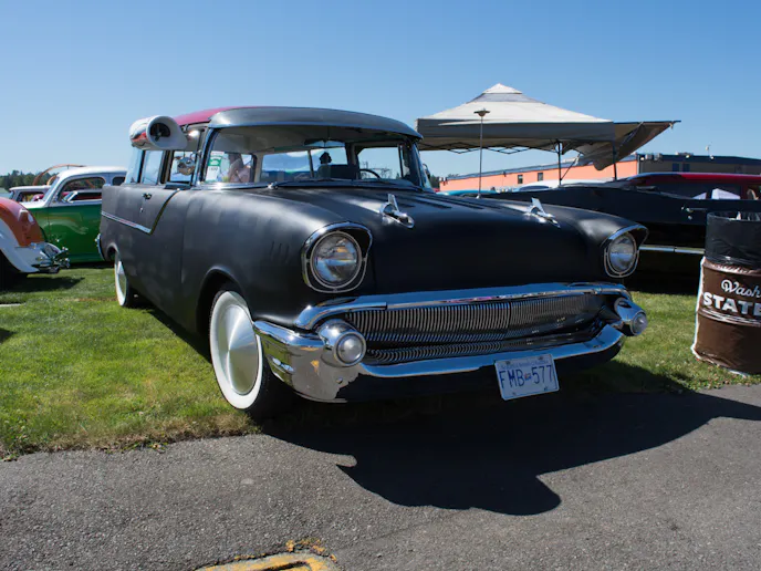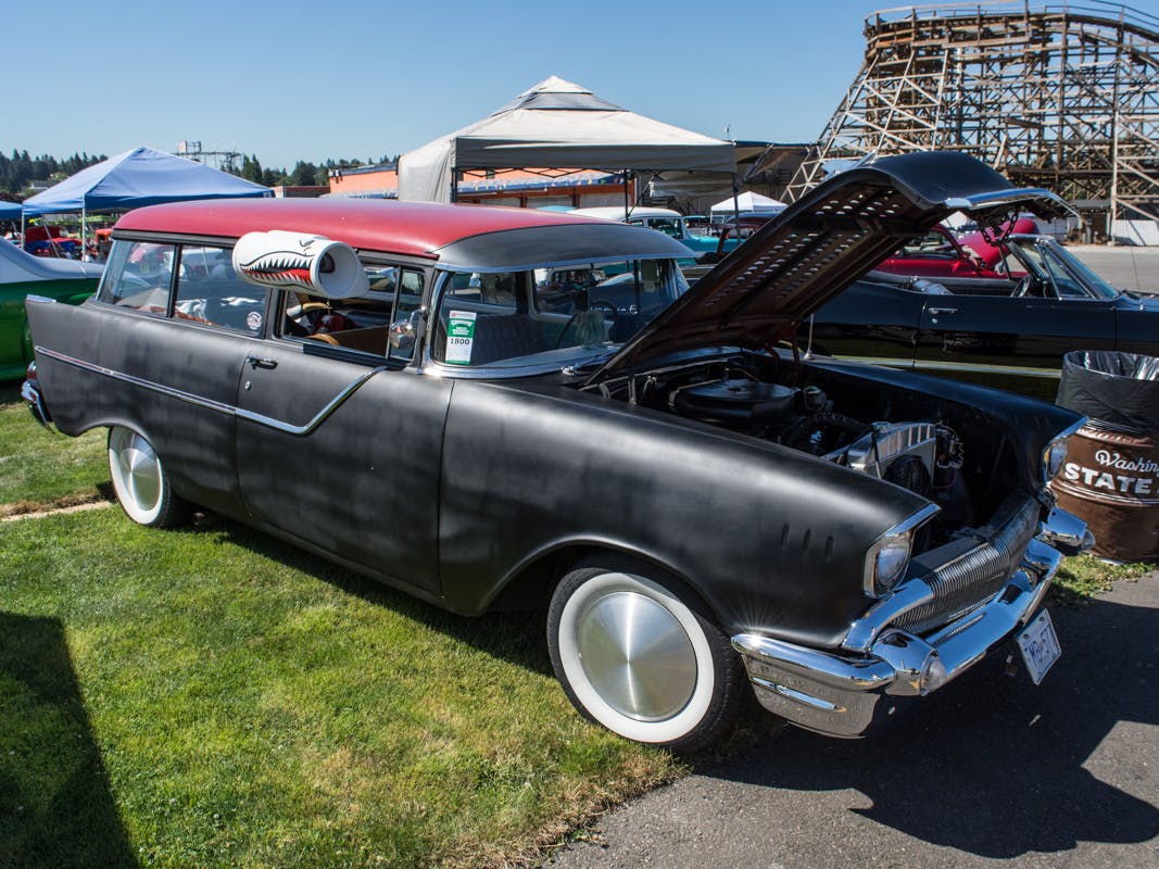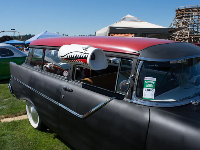 At first glance, you may not even recognize this car as a 1957 Chevrolet wagon. It has the side trim from a ’55 Pontiac, the grill from a ‘57 Buick, and custom driving lights in the front bumper. This custom creation belongs to Joe Ball of British Columbia, Canada, and is one of only about 70 cars like this that were ever produced. Why so unusual? It is a delivery sedan with windows all the way around.