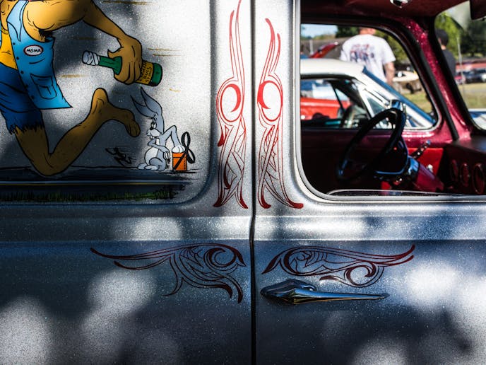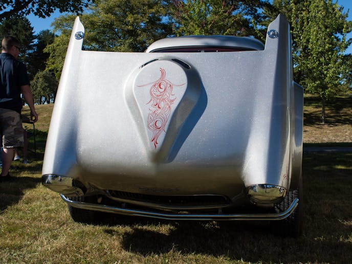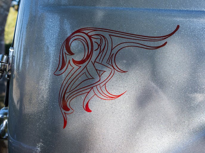 The silver flake paint is original to the restoration done decades ago and dates back to about the 70s, but the pin-striping is a little bit newer, although not by much. It was done in 1984 at a “Back to the ’50s street cruise” in Minnesota. “The striping was actually done by two people,” Miles explained. “It was a husband and wife that each did one side of the car.” The quality of their work is a tribute to their skill. Although they each took a side, without being told, you would never know the difference. “It was all done by hand too, no stencils or anything like that.”