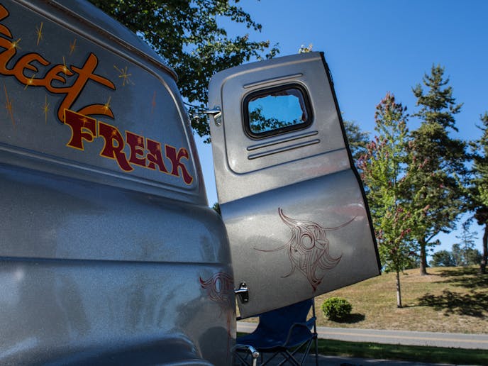 That vintage hot-rod style that it has is more than just a clone. This Thames is a real-deal vintage restoration. It was already restored and hot-rodded back in the late 60s and early 70s. While Miles has only had the car for four years, he has already made his mark, and big time.
