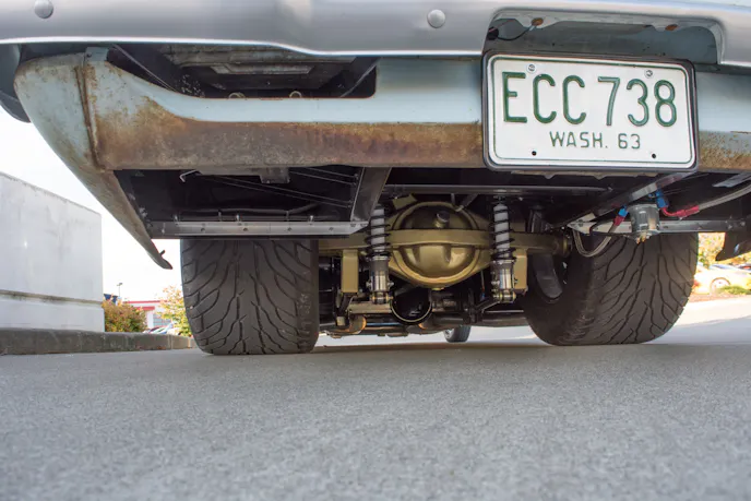 “I did everything to this car,” Kim tells us. “I bought it as a shell.” He only paid $200 for it, which is a screaming deal no matter what kind of shape it was in. Kim added an Art Morrison 4-link rear suspension system, tubbed the rear end, added a 3.50:1 geared Ford 9-inch rearend, original Donovan valve covers, and used a GM 200 R-4 transmission. Fueling this gas hungry monster are two 450cfm Holley carburetors.