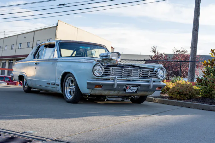 Kim Brynn of Tacoma, Washington, owns this little beast, and he has had it for the last two years. It’s an awesome car that deserves a second look. This Dart embraces the combo look of having patina on the exterior and a super clean engine. One of the tail light lenses is even shattered, showing a bare bulb out of the lens. It’s old, it’s worn, and it works well!