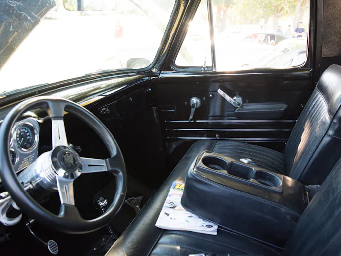 Also featuring an Art Morrison rear clip and 20-inch wheels, this is a tough truck that is ready to take on the best of them at the track. The custom look and performance feel of this truck has also been upgraded with the addition of VDO gauges on the dash and a stellar custom black leather interior job. To try and pick one favorite feature on this truck would be nearly impossible, but if you forced our hand, it might have to be that blown 427. What do you like most about it?