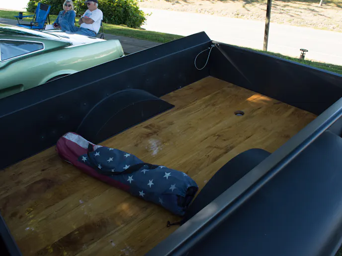 “I dropped the motor down by 5-1/2 inches and slid it back by seven inches,” Kelley explained. “Everything fits great under the hood.” This was the first thing Kelley built when he got back into cars and trucks about ten years ago. He was originally looking for a ’55 Chevy truck when his accountant came across this one.