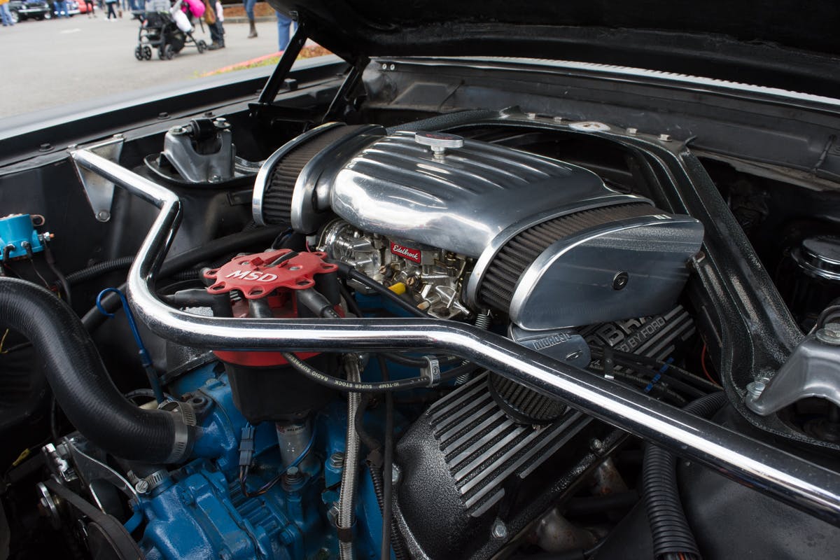 The air cleaner was one thing that really caught our attention. It's an unusual piece that adds a real flair to the engine on this Mustang!