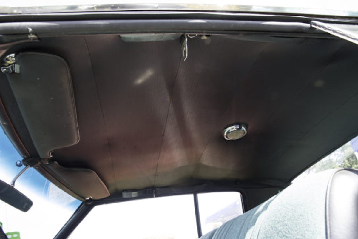 The interior is all original except the seat covers. While there was a lot of rust in the car, the durable old vinyl was spared and the interior remains in decent original condition. The seats of cars in this vintage often have to be recovered because unlike door panels, headliners, and package trays, the seats have weight and movement placed on them. We’ve seen flawless original seats burst at the seams after the first use in decades because the seams dry rot and lose their strength.