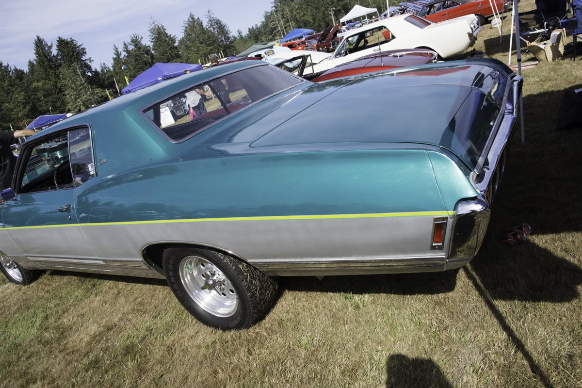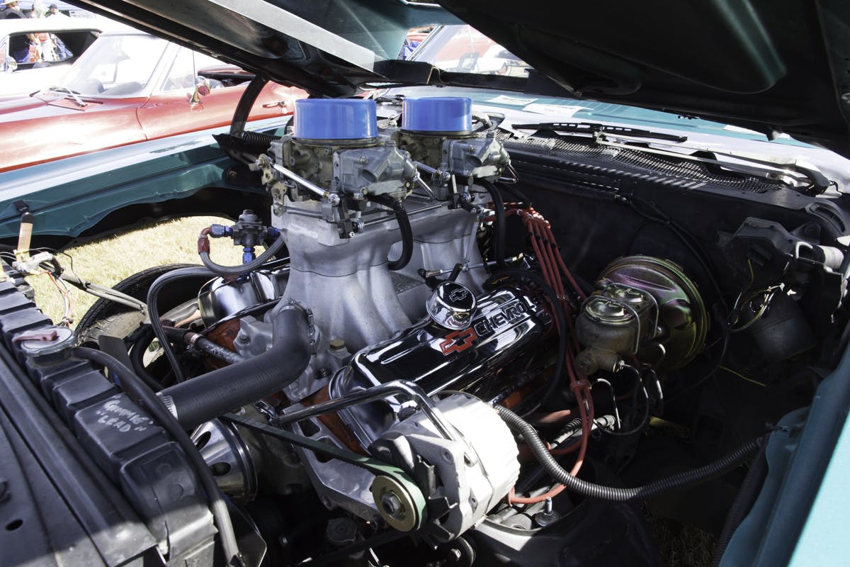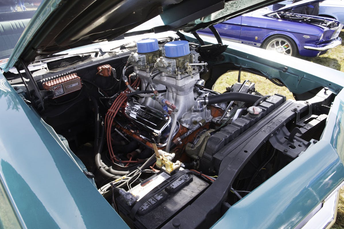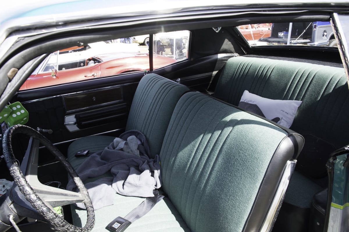 The 500 cubic-incher is fueled by a set of twin 780cfm Holley double pumper carburetors. The engine is followed by the factory turbo-400 automatic transmission with a 4000 stall converter and the factory 10-bolt 2.73:1 geared rearend.