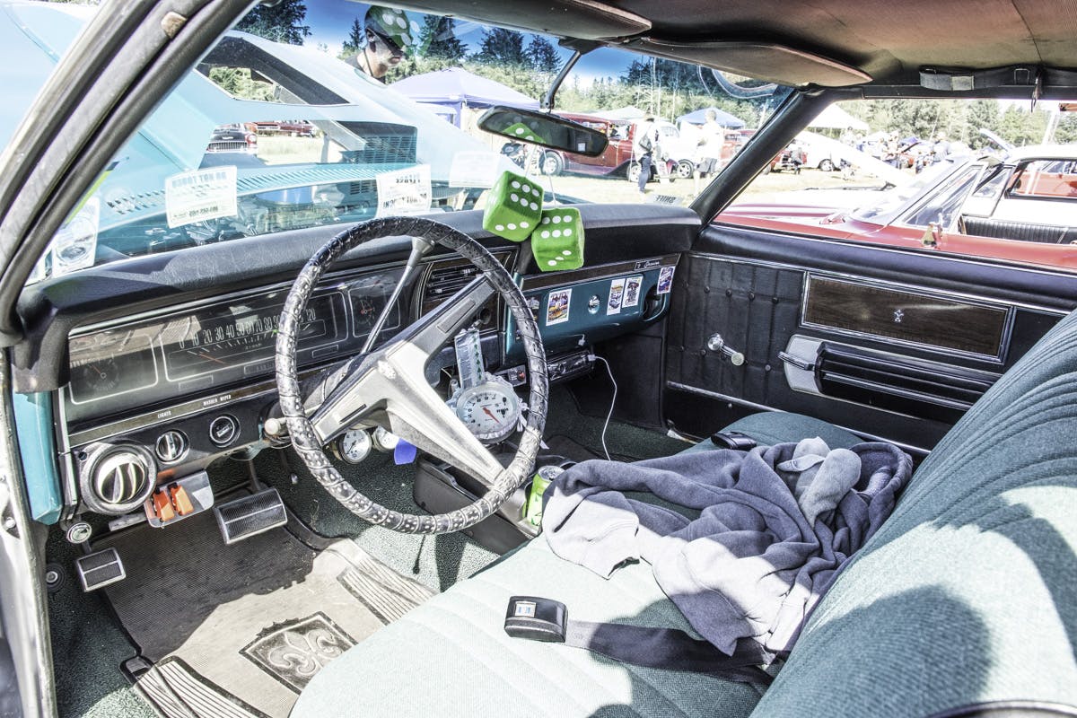 Other enhancements Barry has made to the car are the MSD electronic ignition, Auto Meter instruments, and some chrome dress-up work under the hood. Overall it’s a really nice car that’s great for cruising, but when he throws that blower on the big-block, it’s also good for a day at the track. “It’s all old school,” Barry explained, “This is what a daily driver looks like.”