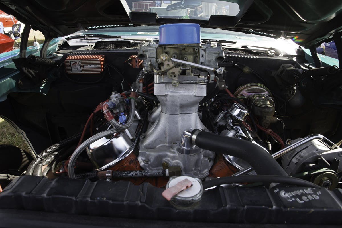 The new engine is a 500 cubic-inch big-block Chevy that Barry built back in 2015. “I usually run with an 871-blower motor too,” Barry explained, “But that scares the wife so we put the tunnel-ram back on to bring it down a bit.” Now that’s something we don’t hear all that often, putting a tunnel ram on to bring it down.