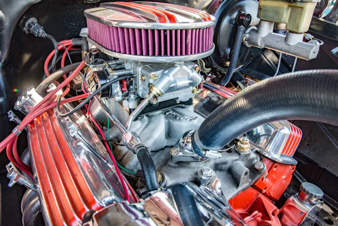 He updated the drivetrain and it’s now a 350 cubic-inch engine fueled by a 750 cfm Holley carburetor that’s mounted to an Edelbrock intake. The engine is paired to a 4-speed manual transmission. “It’s a built motor out of a 1969 Camaro,” Nick explained. “It’s got a nice cam and headers.”