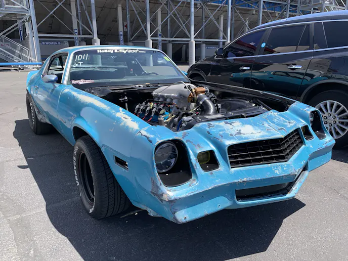 We spotted this Camaro on Sunday, the last day of LS Fest. It sat near the concession stand juxtaposed by some rather ordinary cars. The strikingly tough visage of the perfectly ratty Camaro next to a Buick Enclave or whatever it was made us reflect upon all the work that goes into each and every build at LS Fest. It’s probably easy for the unknowing or uncaring person to dismiss this patina’d Maro’ as a hoopty, but for those of us in the know…The LS topped with a Holley Hi-Ram, badass Hoosiers on Cragar D-Windows, and the killer blue patina – those things make this Camaro anything but ordinary. These aren’t just cars taking people from point A to point B, they’re vessels transporting their passengers to another dimension. Seriously, we’d bet making a pass down the track in this Camaro feels something like a rocket ship. We’ll have to sit down with an astronaut and get back to you, til then, here’s this blue baddie kicking off our list at number 1.