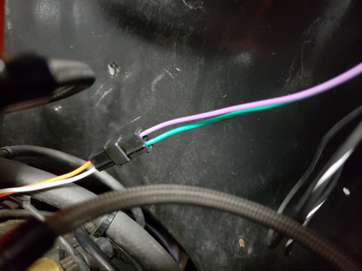 and the unmarked white wire to the distributor’s trigger wire. Cut, strip, and crimp the provided terminal to each and press fit the connectors together.