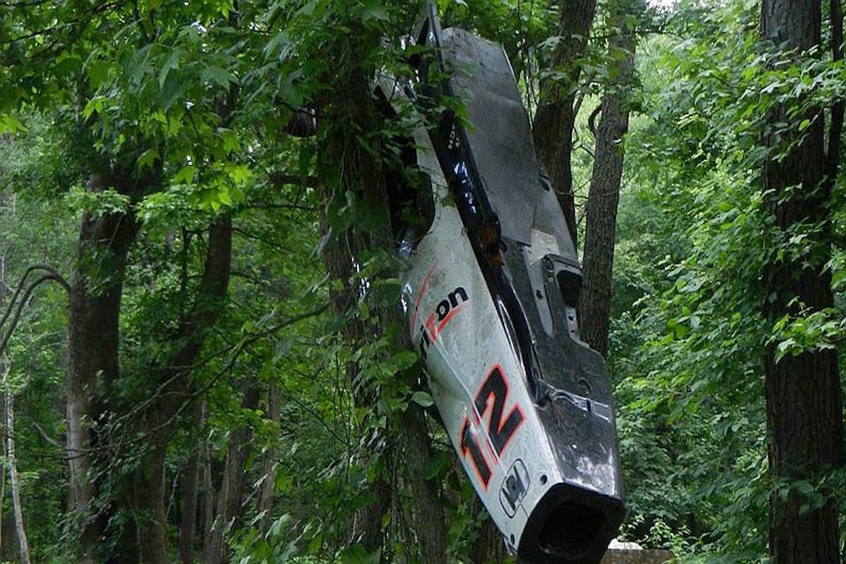 From what we can gather from the pictures, the cars in the graveyard most appear to be late model NASCARs and a handful from the Winston cup era. There may be more Winston era cars as Jr. claims to have over 50 wrecks in his graveyard. A few of the cars that can be found through the forest include Will Power’s Indy car hanging from a tree, and one of Dale Jr.’s Budweiser cars from when he drove for Dale Earnhardt, Inc., can be found buried in a pile of leaves.