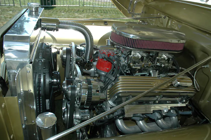 To equip the truck with top notch handling capabilities a TCI IFS featuring polished stainless upper and lower control arms, chrome drop spindles, and a polished antiroll bar were outfitted.