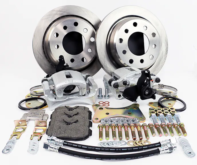 According to the release, the result is a modern brake system that utilizes elements of the original equipment in a way that provides better braking and easier installation makes installation easier. MPB said the most significant change was a move from the old caliper to a modern one, as seen on late model Ford applications. It is still a floating caliper, but it mounts on a new cradle that allows it to move more freely and therefore gain efficiency.