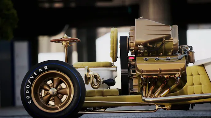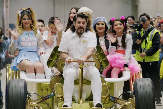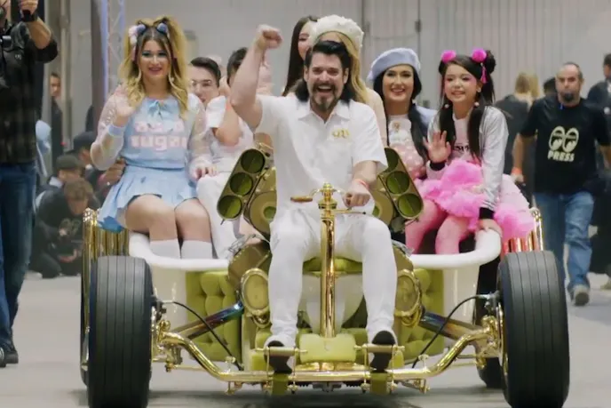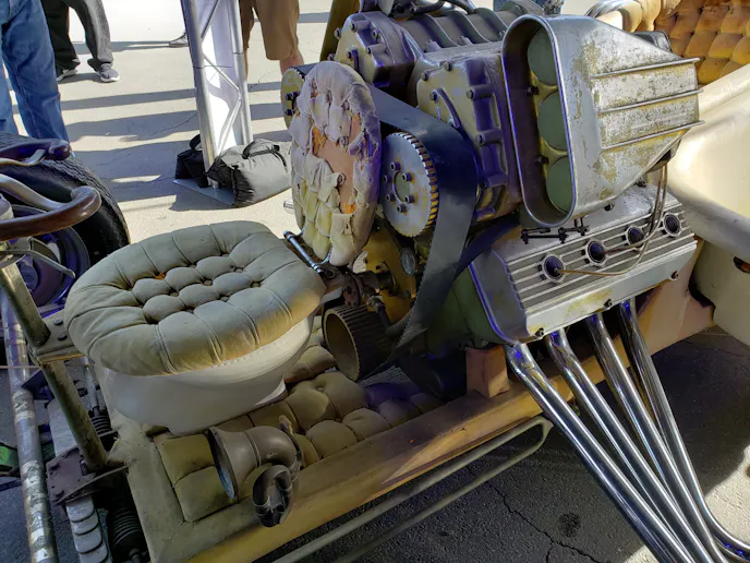The car makes its entry into the show under its own power, but the look on Beau's face speaks volumes of what it must be like to pilot a several-hundred horsepower toilet.