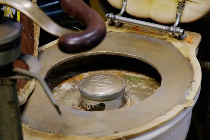 We could think of many places where we could put an early hemi, but right behind us while sitting on "the pot" never came to mind! The "gas" cap is ironically located under the seat.