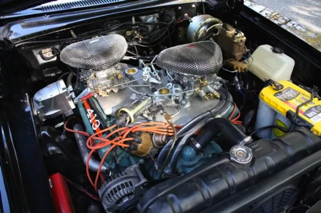 Under the hood is a 413-inch Max Wedge with a new Mopar Performance manifold and dual Edelbrock quads from Mancini Racing with an MSD ignition. He also added power front disc brakes and a narrowed Moser rear axle to make room for larger meats out back.