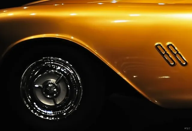 The option was made to debut a golden Oldsmobile version of the Corvette at the next New York Motorama. Built on the Corvette chassis and 102-inch wheelbase, the newly coined “F-88,” the Oldsmobile’s body was also made of fiberglass. Unlike the ‘Vette, the F-88 featured an elliptical grille, “hockey stick” side trim, and bullet taillights pulled directly from larger Oldsmobile sedans.