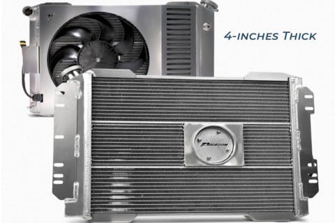 - The thinnest radiator/shroud/fan combination in its class. Under 4″ in critical areas.