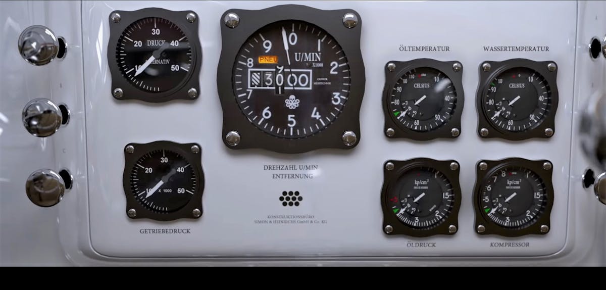 That unmistakably Mercedes design, both in the front and the rear, are wrapped in a thirties-era theme and spiced with an avionic, war-era theme, much like many of the cars that were built soon after World War II. The plane-worthy dash would be the envy of any hot-rodder and while technology seemingly advanced well beyond today’s capabilities throughout the movie, at least Schmitt’s car still kept it to relatively believable levels. A typical oil pressure and temperature gauge set help keep the engine’s lifeblood from boiling, while a super-cool boost gauge fills out the center of the steering wheel.
