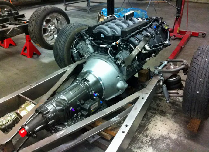 - Engine mount bosses and bellhousing mount patterns common with 4.6L modular engines