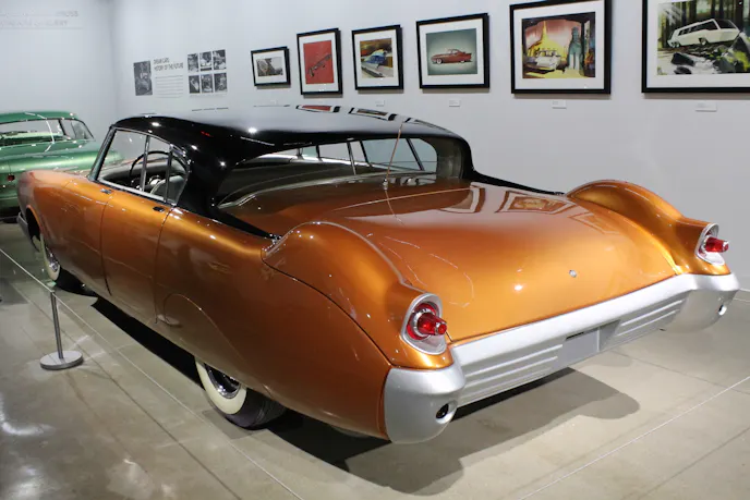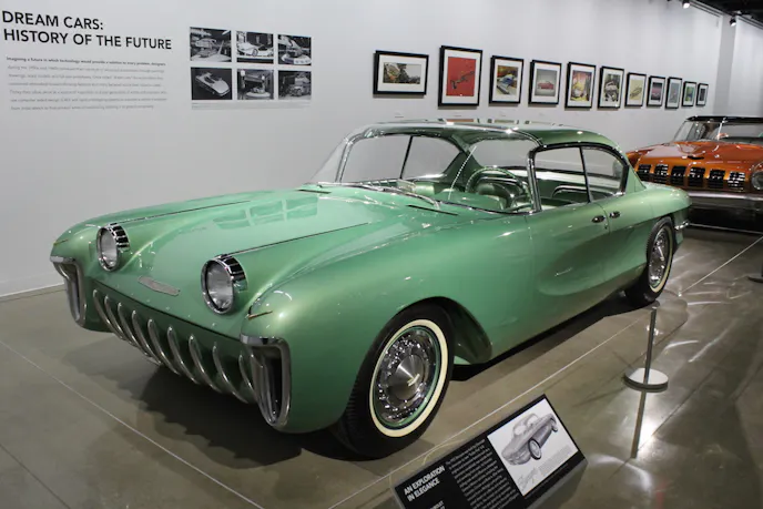 The museum’s new “History of the Future Gallery” looks at mid-century concept cars and designs with an amazing collection of concept cars. Concept cars are merely prototype cars that are built to showcase new styling or technology and presented at prestigious car shows to elicit the public’s reaction.