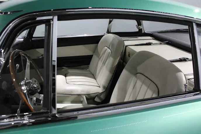 Like a majority of other Chrysler Corporation “dream cars” of the period, the sporty Plymouth Explorer was bodied by Carrozzeria Ghia in Turin, Italy. Its hand-formed coachwork was distinguished by carefully sculpted contours and accentuated by horizontal spears on the sides that were painted white to contrast with the striking metallic green body color. Interior features included leather upholstery, fitted luggage and concealed radio controls.
