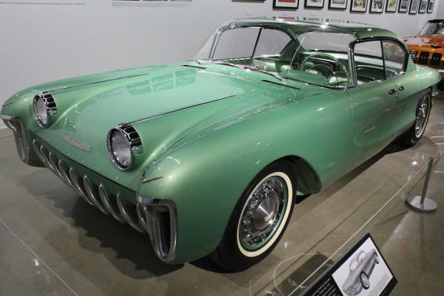 The museum’s new “History of the Future Gallery” looks at mid-century concept cars and designs with an amazing collection of concept cars. Concept cars are merely prototype cars that are built to showcase new styling or technology and presented at prestigious car shows to elicit the public’s reaction.
