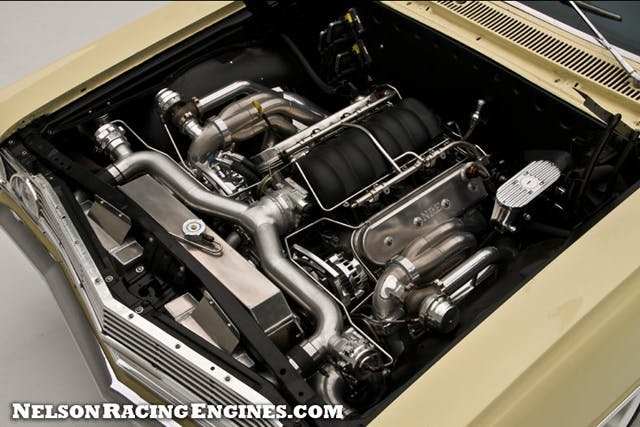 Although the Malibu appears to be mild mannered from the exterior, underneath the hood lurked a potent Nelson Racing Engines Twin Turbo LSX engine. According to Nelson Racing Engines, the ’65 Malibu belongs to Ed Carter; Mr. Carter brought the ’65 to Nelson Racing Engines and asked for the car to be transformed into something that was “scary fast.”