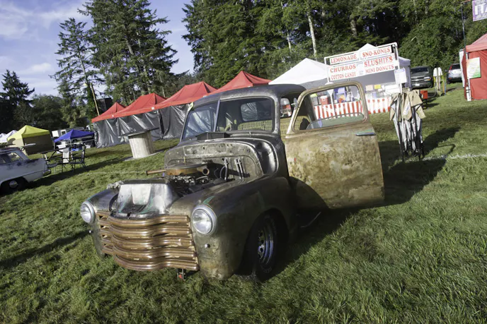 The city of Ocean Park is settled on the northern end of the Long Beach peninsula in Washington State. Every year around this time it is overrun by classic cars—literally. As we were driving in the Friday night before the show, the closer we got to the town, the higher the density of classic cars became. The townsfolk even setup in their lawn-chairs or pickup-beds by the side of the road to watch as their own private parade of classic cars drives through town.