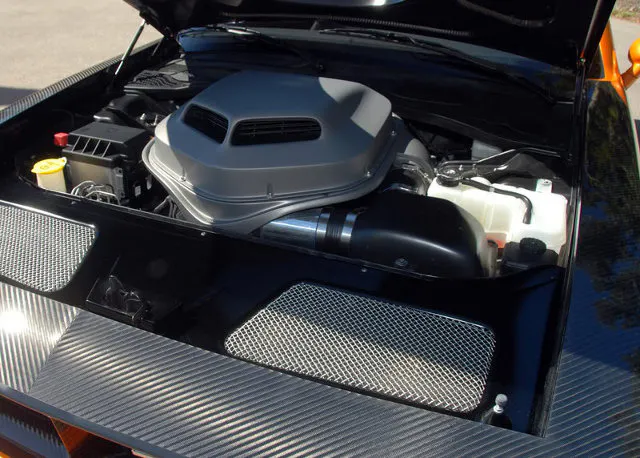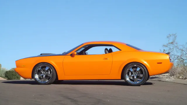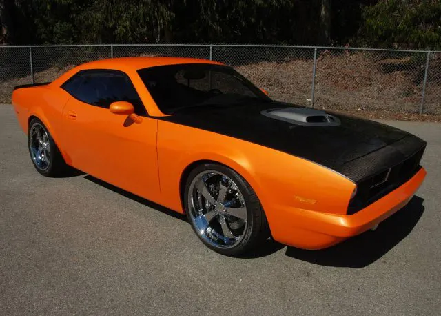 The ‘Cuda was build way back in 2008, based off of a ’07 Dodge Charger. And since the original ‘Cuda had a shorter wheelbase than the original Challenger, so does this one. Much of the Challenger was reused in this project including the chassis, interior, and engine. In addition, Metalcrafters fabricated a Shaker hood integrated into the hood, custom exhaust, and covered it a nice pearl orange paint job.