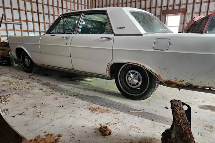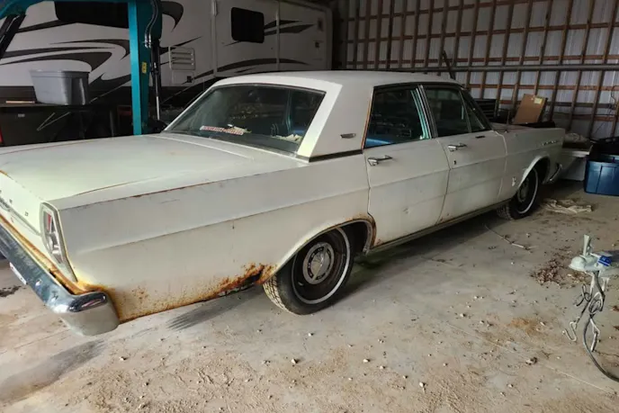 Before leaving for the hour-and-a-half drive, we had done the basics of marketplace window shopping. We called the seller, got some more pictures, and made a lowball offer. With all of those boxes checked, we loaded up and headed out the next day. We were prepared for body rust but agreed that frame rust or excessive hard-to-fix spots of rust would be a deal breaker for us. We wanted something that I could work on while keeping it on the road. After all, this four-door 1965 Galaxie grabbed our attention because I wanted my dad to get to cruise around with my mom and their grandkids on the weekends.