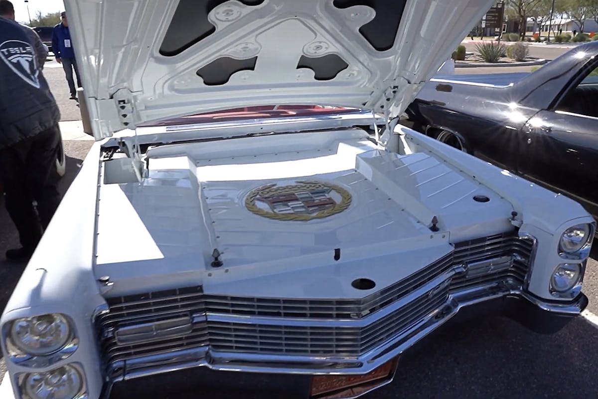 Legacy EV has done some impressive EV conversions, including EV-swapping a hot rod during the SEMA show in 2023. The EV conversion they put together for this Cadillac is interesting because of the sheer amount of power needed to move this beastly vehicle. This conversion is super stealth, you can’t even tell this isn’t an ICE-powered Cadillac until the hood has been raised.