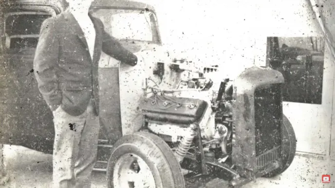 We all know good things take time, and there ain’t no way this car would ever be built in 16 minutes! But, that’s how long this super-cool video by Hot Rod Hoarder himself, Tommy Lee Byrd, takes to tell the story. And what a story to tell! It starts off like so many other tales from the early years of hot rodding. Tommy Lee’s father-in-law started building the car from the money he earned on his paper route, purchasing the ’34 Plymouth shell of a body for $100. A ’40 Ford chassis came next, to which Charles worked out a way to stuff the longer and wider frame under the Plymouth’s floorboards.