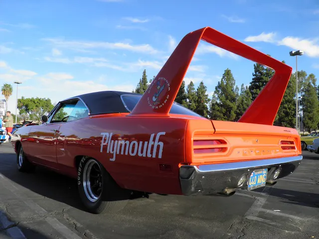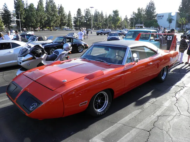 The Sunday car meet at Warner Center always promises to bring together some of the Valley’s rarest specimens of American muscle, but in the case of this orange Superbird, the story behind the car is one of NASCAR racing’s greatest milestone during the apex of the muscle car era.