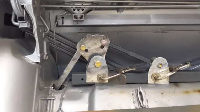 After identifying the points which the pushrods would punch through the floor, Erickson welded on a set of reinforced brackets to the floor and the frame, added a crossbar, and began measuring. With a bottle of San Pellegrino serving as his compass, he devised a makeshift bellcrank and pushrod with thin sheet-metal and tested their range and articulation.