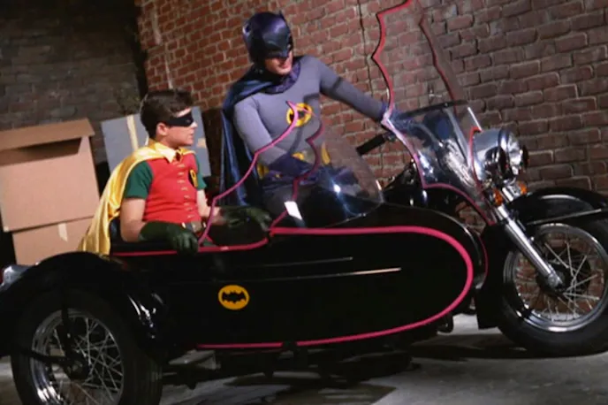 Several motorbikes were used on the series as well. In season one, the Batcycle was introduced. This 1965 Harley-Davidson Electra Glide, complete with an attached side car for Robin, was a perfect complement to the Batmobile and featured the same black paint with red pinstriped and bat decals.