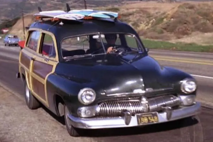 This 1950 Mercury Woodie Station Wagon was featured on the television series, “The Mod Squad.” Photo from {link=https://www.imcdb.org}IMCDB.{/link}