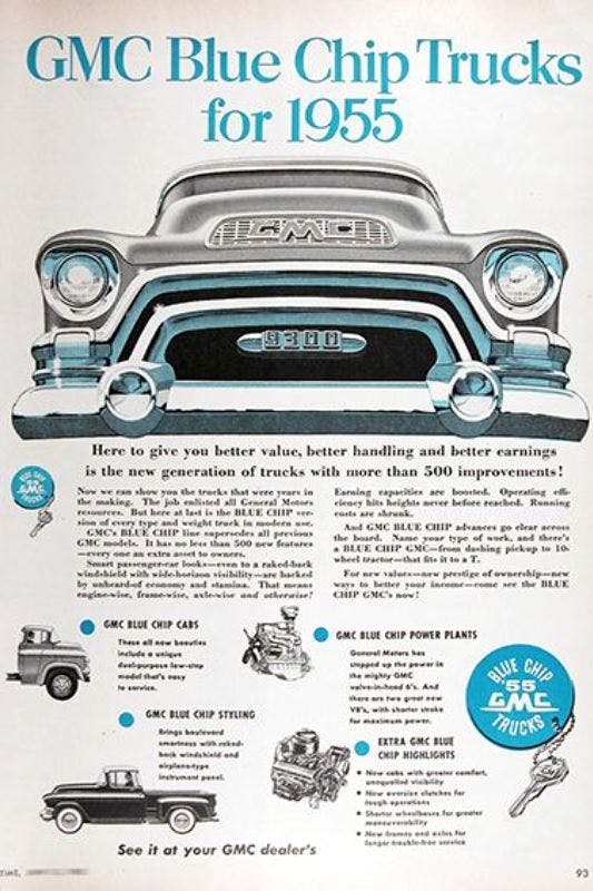 As the successor to the Advance Design trucks, the second series of the Chevrolet Task Force trucks were produced from late 1955 to 1959. At Canadian GMC locations, they were sold as Blue Chip Series. The C/K Series followed.