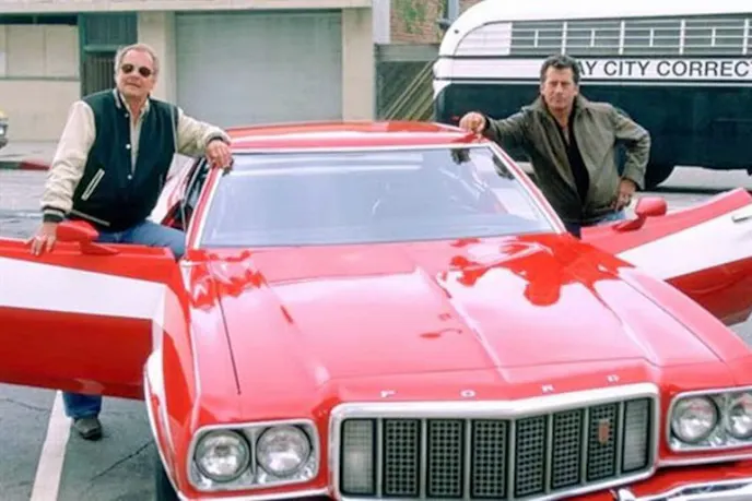 David Soul and Paul Michael Glaser were police detectives and partners on the television series Starsky & Hutch from 1975 to 1979. The 1976 Ford Gran Torino with its iconic white stripe has become a legend. Photo courtesy of Warner Bros. Entertainment.