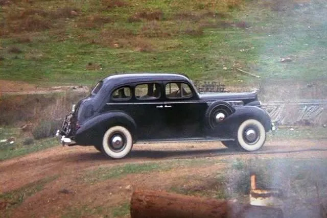 Several classic cars were featured in the first made-for-television movie, adding to the legitimate WWII feel of the timeline. These included a 1938 Oldsmobile Six Business Coupe, 1938 Packard Eight four-door sedan, and a 1939 Plymouth De Luxe Sedan painted drab military green and driven by Trevor. At some point, in most episodes, Wonder Woman would lift the rear wheel of a vehicle off the ground to stop the bad guys from escaping, and this episode was no exception.