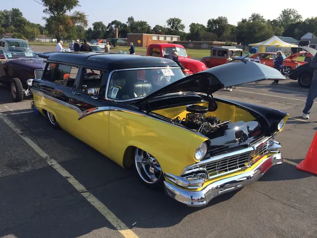 Tim & Chris Lies from Warrenville, Illinois with his beautiful bright yellow & black 1956 Ford Ranch Wagon.