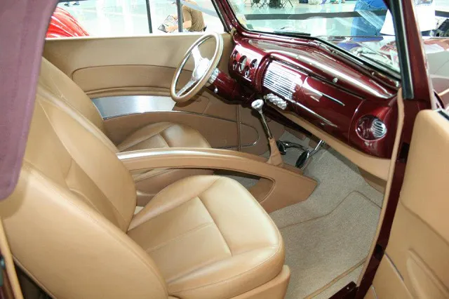 In browsing through the TCI Customer’s Car albums on the company’s Facebook page, we came across one such dream car come true owned by Odell Wilson. Built by Larry Griffey’s Hot Rods & Restorations, Odell’s 1940 Ford convertible is magnificent in maroon with a maroon top. Contrasting the red hue, which makes its way inside the car as well, is a tan interior complete with custom door panels, center console, seats and more.