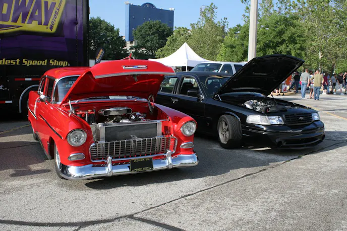 A TREMEC Magnum-equipped ’55 Chevy with a stroked big-block, and a 4-valve Cobra powered Bondurant Crown Vic, with a TKO.