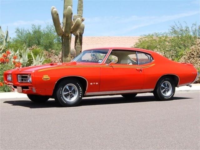 From a performance standpoint, with the drop of the ’69, was that new “Ram Air IV” version of the 400. At 370 hp, the Ram Air IV had special heads with round exhaust ports, an aluminum intake manifold and a special cam. It was the most powerful engine yet put into a GTO and that makes it, by far, the most collectible of all ’69 GTOs. Only 700 ’69 GTO coupes were built with the Ram Air IV option, and only 297 Judge coupes were so equipped. Also to note, the 1969 GTO “The Judge” convertible with the Ram Air IV was the most rare, having only five produced.