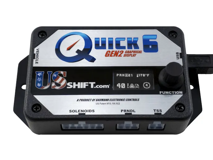Need to update your old cruiser with a modern automatic transmission?  US Shift has the solution. Their Quick Shift 6 is a transmission controller that allows the use of 2011 and later Ford, six-speed 6R80 in a wide variety of vehicles that lack OEM capability. It is suitable for classic cars, trucks, or motorhomes, and it can also enhance the performance of a modern vehicle. The Quick 6 is a powerful, fully-featured, and easy-to-use controller based on REVolution architecture. Quick  Shift 6 enables the user to directly adjust shift points, firmness, torque converter engagement, and more.