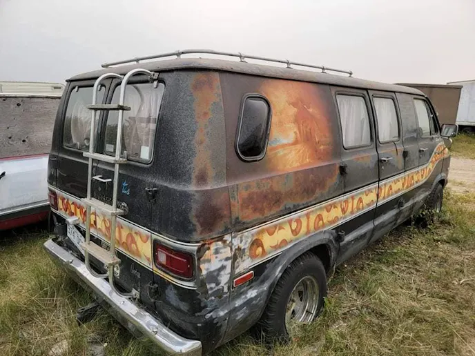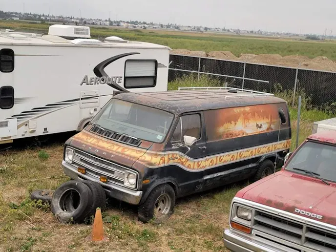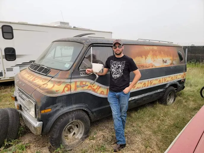 Jesse explains, “This 1977 Dodge B20 Hop Cap van has made one hell of a journey to be in my possession. How this van traveled 3,000km from Indiana to Quebec and then to Alberta over the years is anyone’s guess. She has been sitting probably 20 years in the same spot at a local storage yard until today.