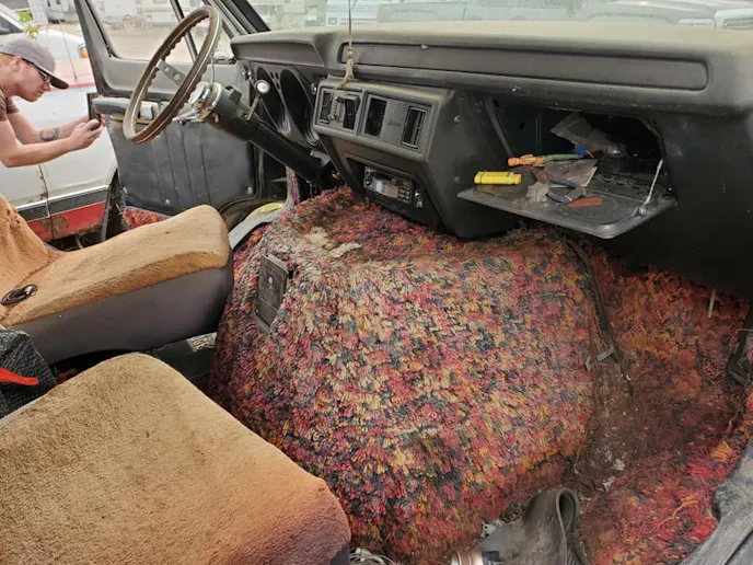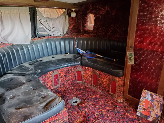 “This van is a true survivor and I will clean it up and keep it original. She’s very gross inside but looks all intact. It appears to be powered by a 318 V8. It has tons of Quebec vanning plates and old girlie mags inside. If this old van could talk. To tell you the joy I experienced knowing that I found this van is a feeling I will never forget. Keep your eyes open. They are out there still in the strangest places. I will update you with more cleaning pictures later.” Check out Jesse’s page, he has a knack for finding old vans.