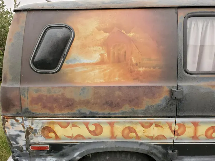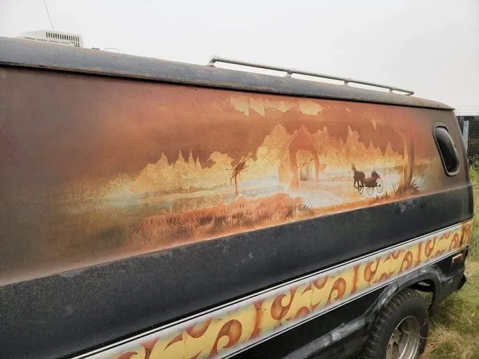 Jesse explains, “This 1977 Dodge B20 Hop Cap van has made one hell of a journey to be in my possession. How this van traveled 3,000km from Indiana to Quebec and then to Alberta over the years is anyone’s guess. She has been sitting probably 20 years in the same spot at a local storage yard until today.